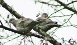 A double crested cormorant drying its wings as they do not have waterproof feathers, a cormorant that successfully caught a fish, Eurasian collared doves and a variety of ducks.
