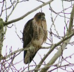 A red tailed hawk perched high in a tree surveying the surrounding fields and marshes. These birds of prey are legally protected in Canada, Mexico and the US. They can be captured at a young age to be trained to hunt in the art of falconry.